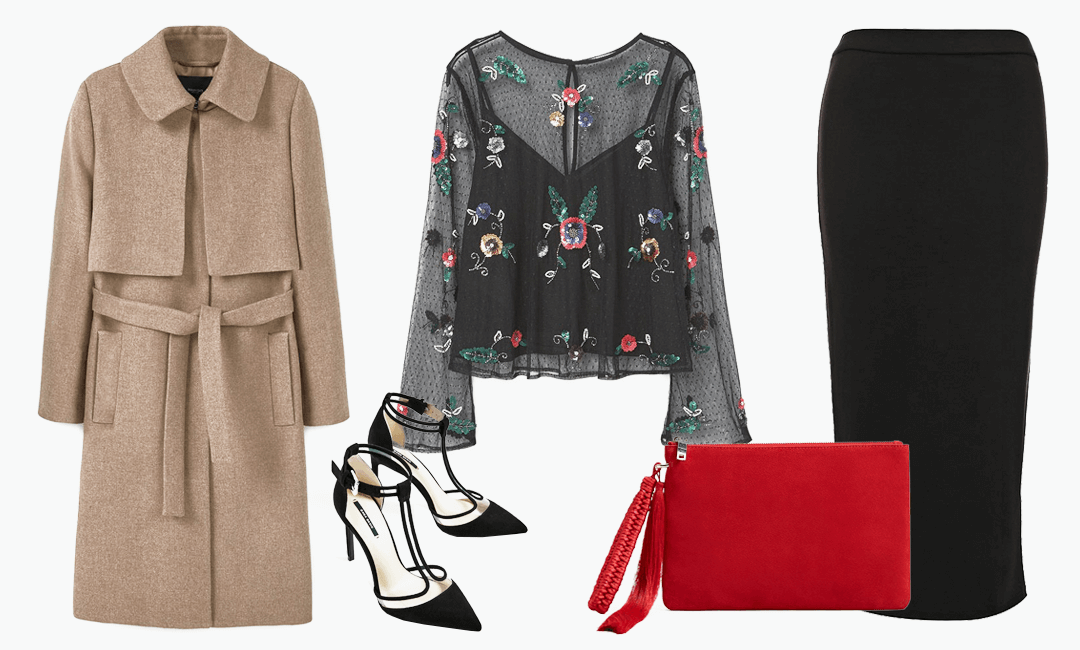 Если красный цвет в одежде — это совсем не для вас, то всегда есть возможность использовать его в аксессуарах. Это самый простой способ начать носить красное, если до этого вы его избегали. Женственная блузка с цветочным принтом, юбка-карандаш и классическое пальто — прекрасный образ для прогулки, похода в кино или любого другого культурного мероприятия.