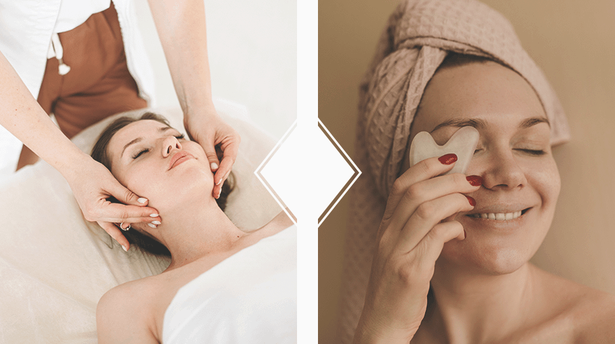 Классический массаж лица выполняется руками. Если ты хочешь ускорить процесс лимфодренажа или восстановления кожи, можешь использовать роллеры из минералов, пластины гуа ша, палочки канса, аппараты для миостимуляции. Некоторые делают массаж даже охлажденными ложками или небольшими вакуумными банками. Каждый из предметов обладает особыми свойствами. Например, каменные или металлические устройства охладят лицо и помогут убрать отеки. Предметы, которые пускают разряды тока, ускоряют клеточный обмен.