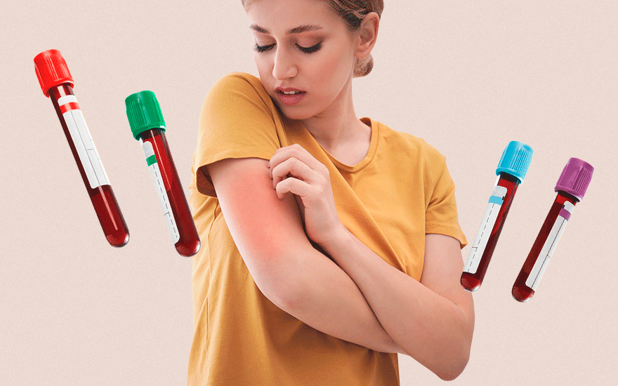 Кожный тест также позволяет узнать выраженность реакции на аллерген. Для этого доктору придется тебя слегка поцарапать, а затем нанести на поврежденный участок кожи немного аллергена. Если покраснение и отечность отмечаются в течение 30–40 минут после нанесения, это указывает на то, что аллергия есть. Обычно такое исследование проводится, если есть подозрение на реакцию от пыльцы, пищи и других бытовых аллергенов.