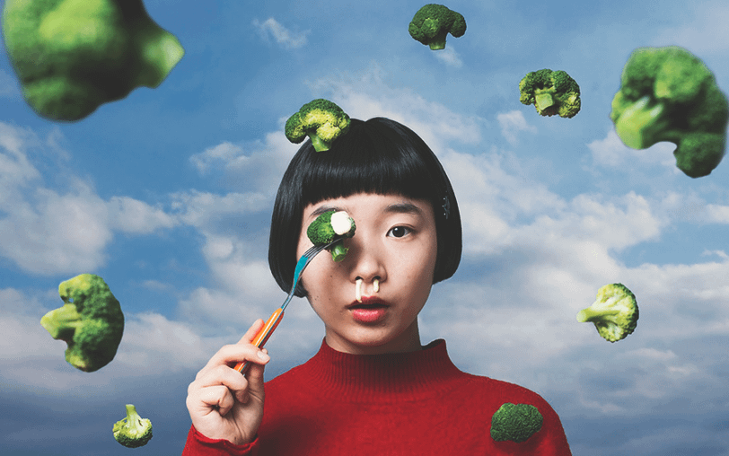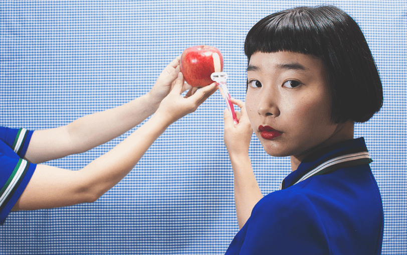 Начиная работать, я сперва представляю, что хочу сделать. Читаю книги, смотрю телевизор, общаюсь с друзьями — так и появляются мысли. Например, представляла, что хочу подстричься с помощью канцелярского ножа, думала, как бы я смотрелась, стоя на рисовом шарике.