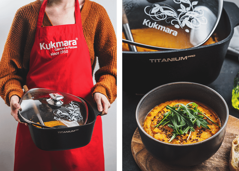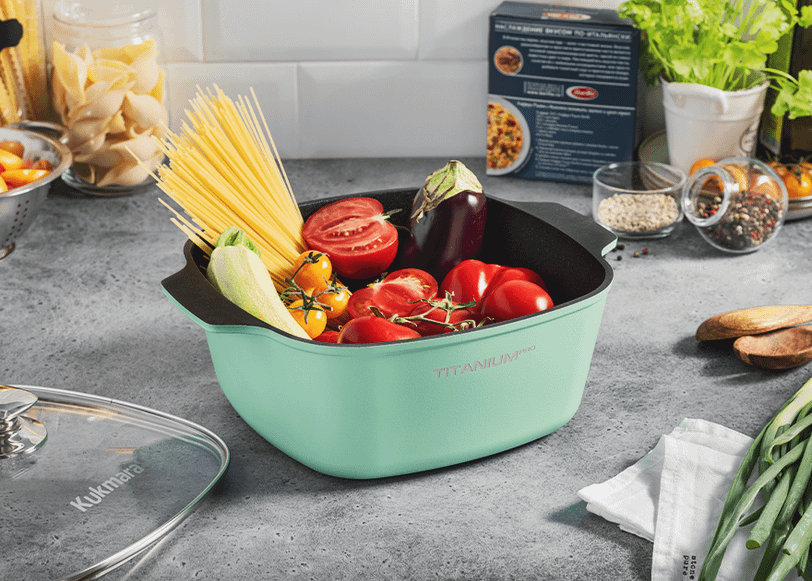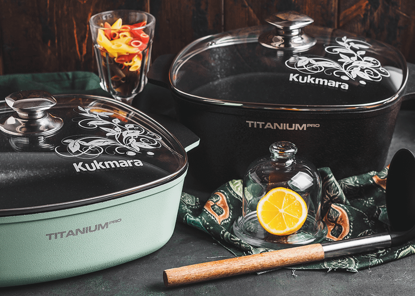 Обрати внимание на кастрюли Kukmara из линейки Titanium pro Induction. Они выполнены из высококачественного алюминия с антипригарным покрытием, усиленным частицами титана. Такая кастрюля прослужит долгие годы и благодаря своему покрытию избавит владельца от долгой очистки после приготовления.