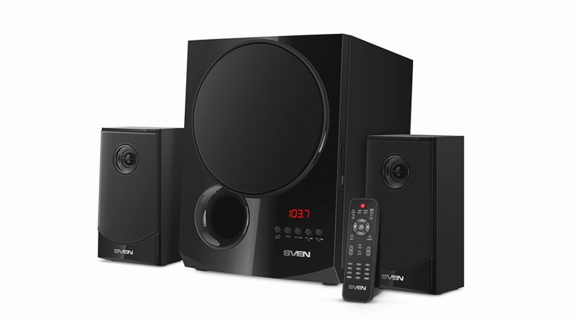 Тому, кто чаще всего отдыхает дома, понравится мультимедийная акустическая система. Такие модели уже могут позволить себе более впечатляющий дизайн: деревянные корпуса, светодиодная динамическая подсветка, мощный звук. В SVEN MS-2080 есть также встроенное FM-радио и LED-дисплей.