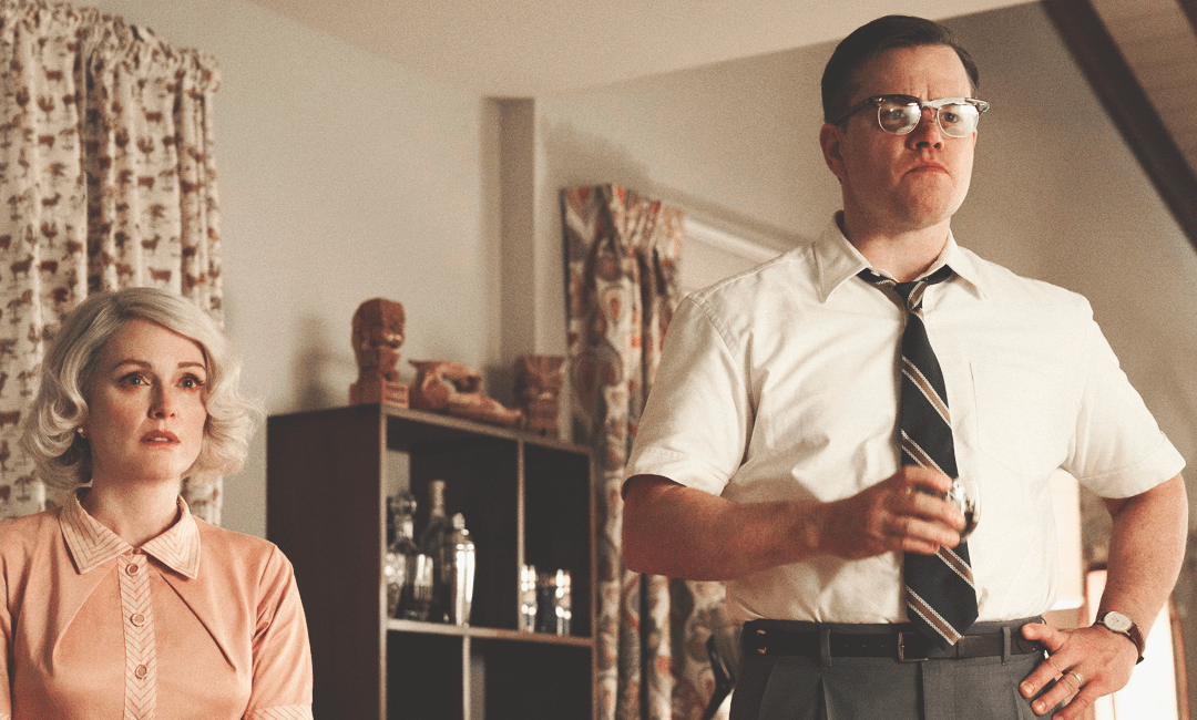В новом фильме Мэтт Деймон и Кристен Виг проходят экспериментальную процедуру, уменьшающую их до нескольких сантиметров, после чего они переезжают в миниатюрный городок, чтобы жить счастливой жизнью. Несколько тысяч долларов пары превращаются в миллионы в новом мире, и они могут позволить себе жизнь в огромном особняке, прогулки по мини-Диснейлендам и другие развлечения.