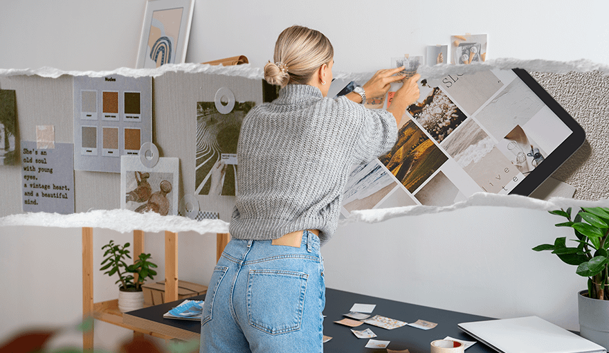 Так называется техника коллажирования на бумаге, предполагающая соединение разных картинок. Например, ты можешь создать мудборд с фотографиями мест, которые хочешь посетить, или сделать коллаж из картин или предметов, которые вдохновляют тебя.