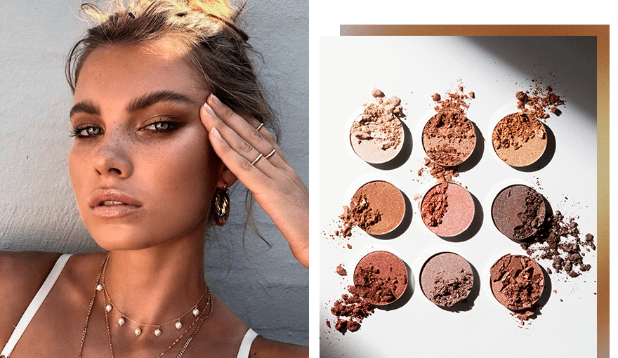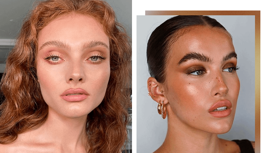Латте-макияж сложно представить без использования коричневых или бежевых теней для век. Если хочешь создать вечерний образ, выбирай бьюти-продукты с мерцающим эффектом, для повседневного макияжа используй тени с легким дымчатым финишем.