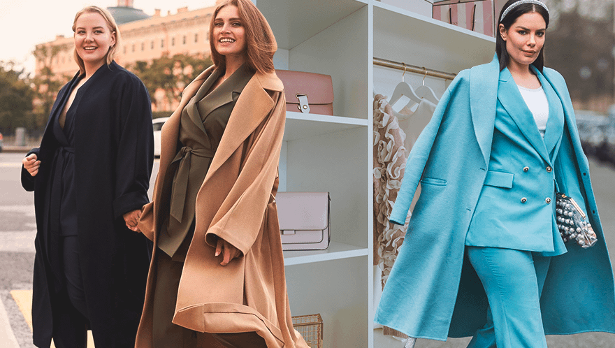 Длина выше линии бедер подчеркнет достоинства. Слишком жесткая костюмная ткань сделает женственную фигуру нарочито строгой. Чтобы этого избежать, выбирай плотный трикотаж, шерсть с кашемировой ниткой, другие мягкие ткани.
