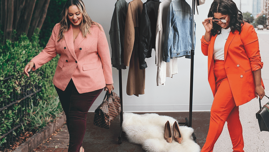 Идеальный фасон костюма будет подчеркивать талию, грудь и плечи, отвлекая внимание от «пышности» внизу.