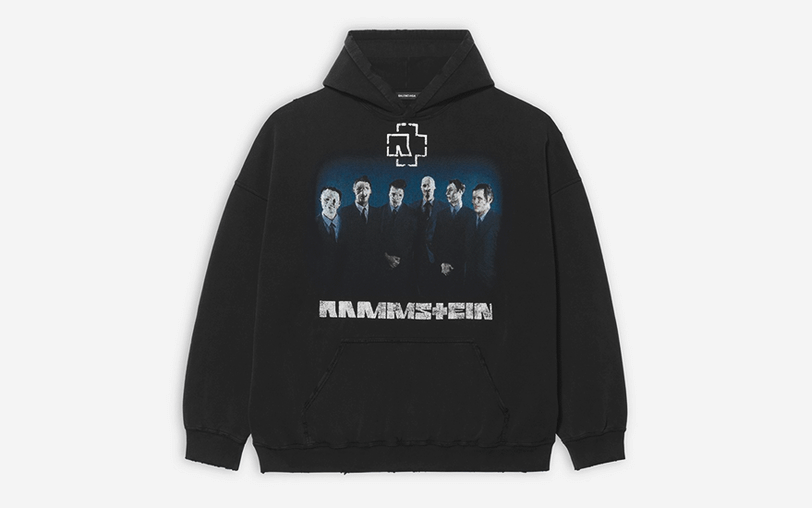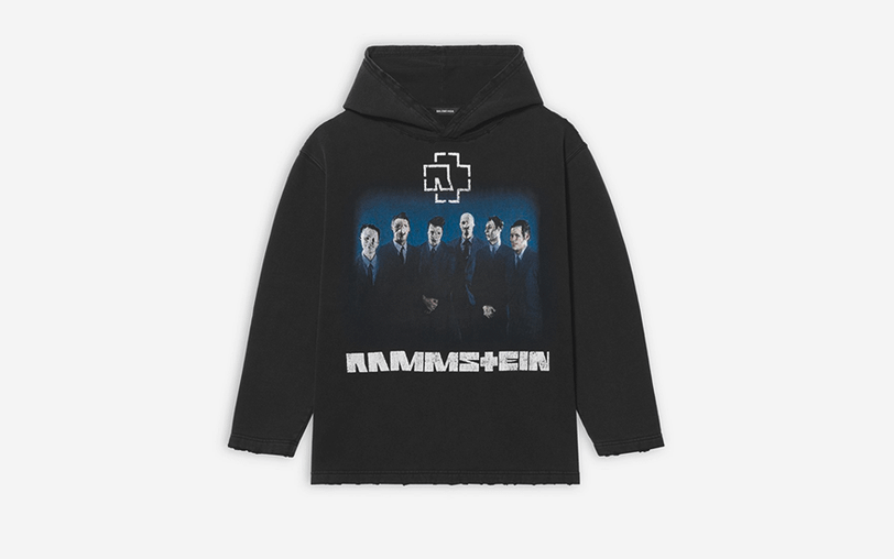 Сама коллекция Демны для Rammstein состоит из худи, футболки, свитшота, плаща, рюкзака, кепки и поясной сумки. Каждое изделие выполнено в узнаваемом стиле модельера с характерными силуэтами, которые можно увидеть и в линейках Balenciaga. А в основу принта легла фотография музыкантов с эпохи хита Du Hast.