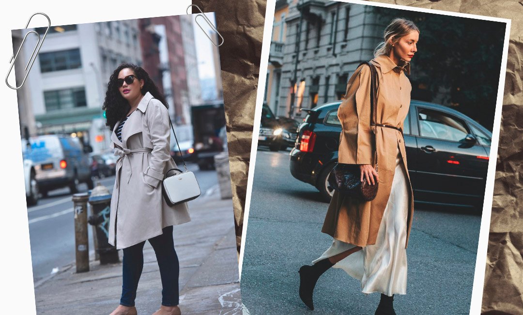 Такая вещь одинаково хорошо выглядит и с туфлями на шпильках, и с кроссовками. Если выбираешь юбку или платье, в идеале одно должно быть короче, чем тренч.