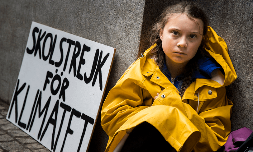 Это школьница из Шведции, которая стала известна после того, как в прошлом году устраивала одиночные протесты у шведского парламента. Она призывала руководство страны немедленно начать принимать усилия по борьбе с изменением климата в соответствии с парижским соглашением.