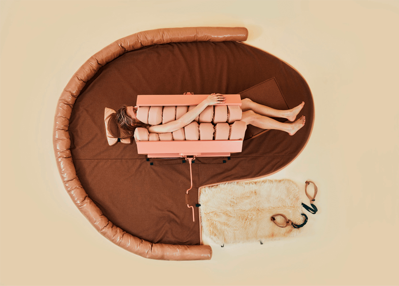 Люси Макрей, дизайнер из Лос-Анджелеса, создала машину под названием «Компрессионный ковер» — она способна обнимать все тело человека с помощью нескольких слоев подушек. «Компрессионный ковер» окрашен в розовые и коричневые пастельные оттенки, которые напоминают цвет кожи и подчеркивают иллюзию человеческого прикосновения.