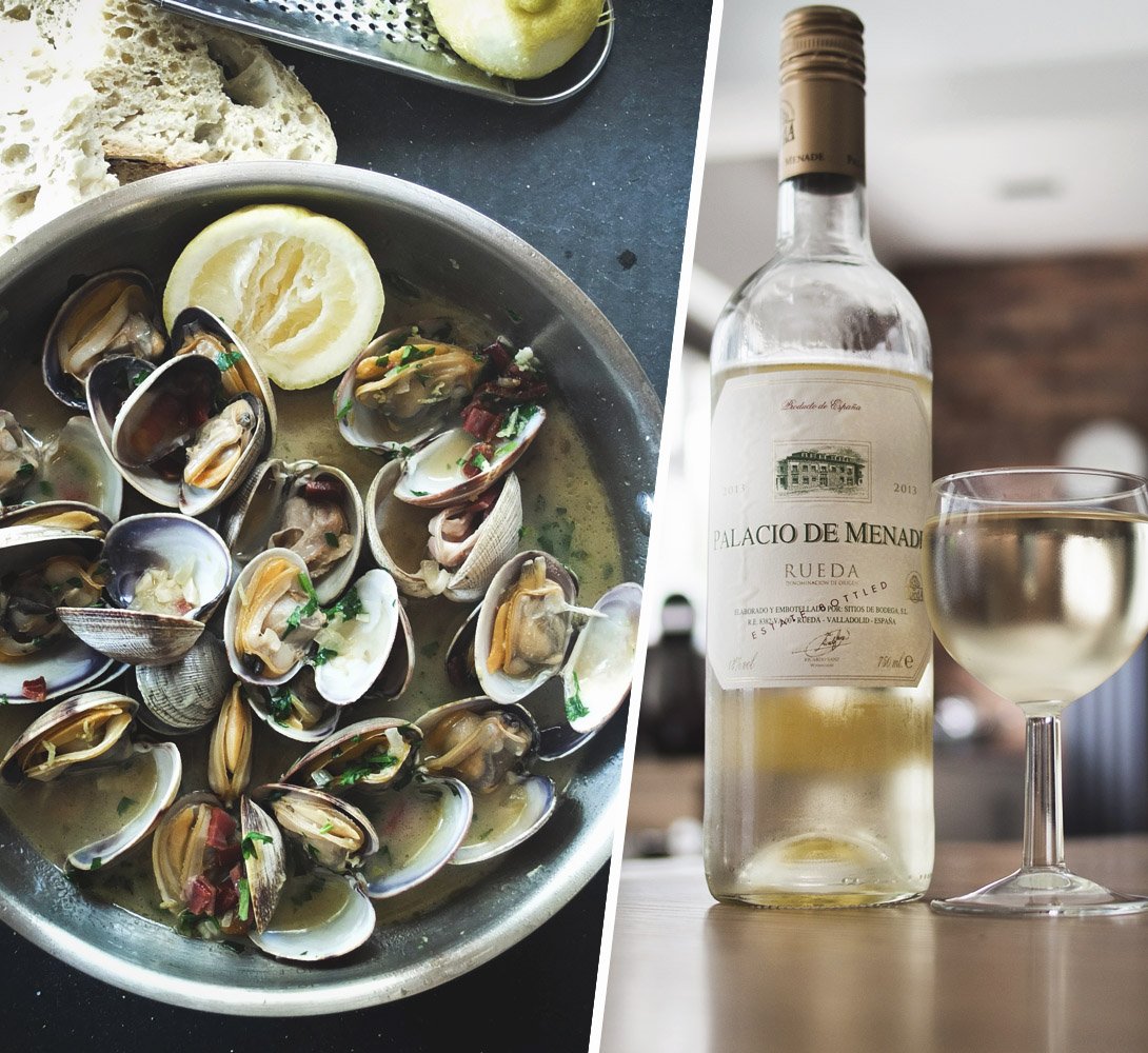 • Рыбные блюда и морепродукты чаще подаются с белым вином, но могут сервироваться и с полусладкими, и сладкими красными винами. Из белого вина с острыми рыбными блюдами подается что-то с насыщенным пряным ароматом, например, Рислинг, Траминер и Пино Гриджо. С копченой рыбой — Шабли или Совиньон Блан с фруктовым вкусом. Со всем остальным — полусладкие молодые белые вина или шампанское. Всё белое вино должно быть охлаждено.