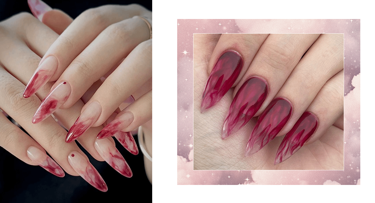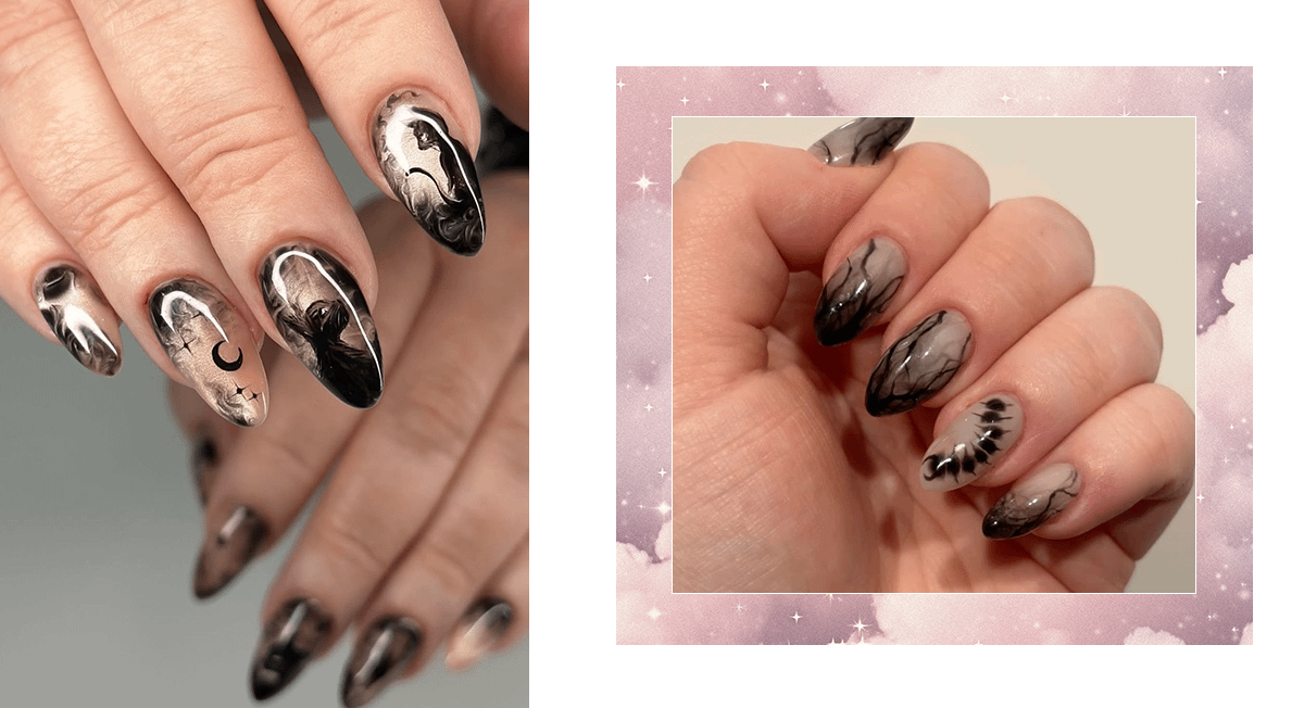 Такой дизайн выглядит мистически и эффектно, идеально подходит для вечернего выхода или праздничного образа.