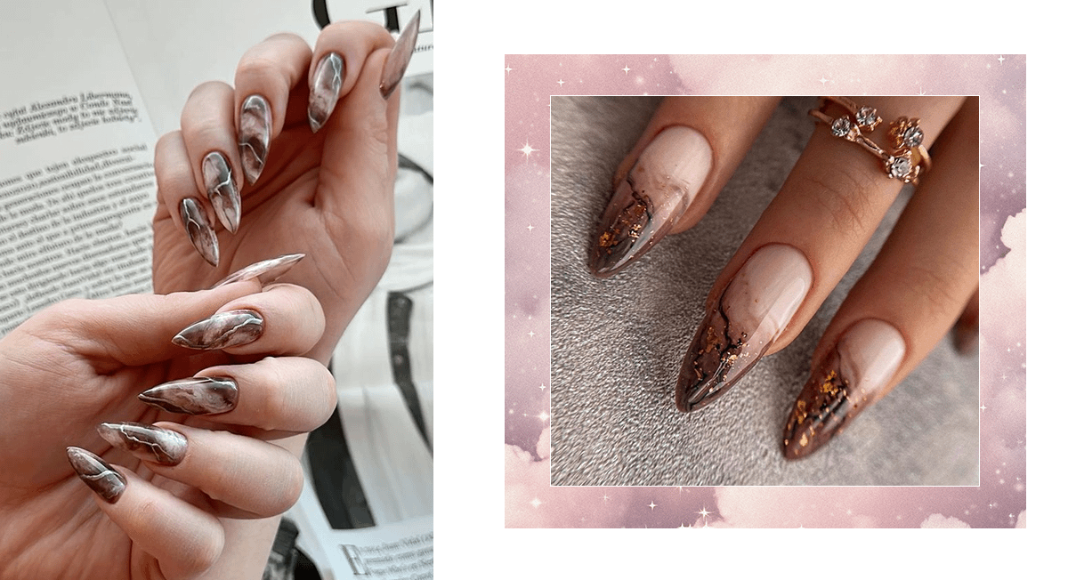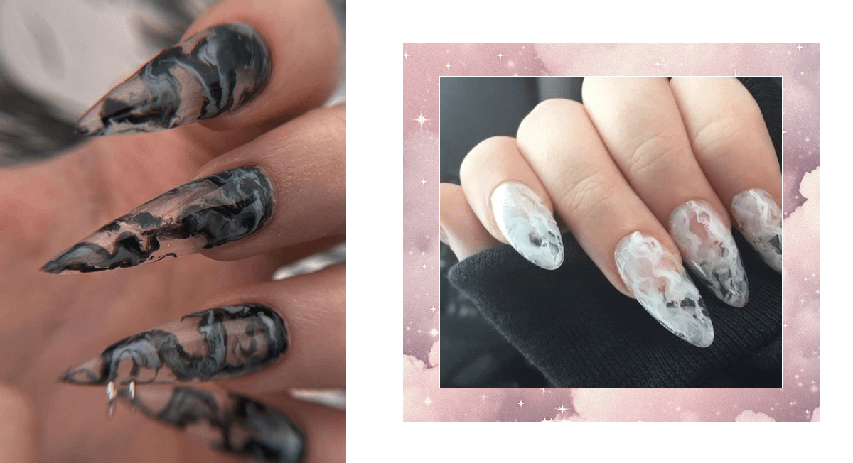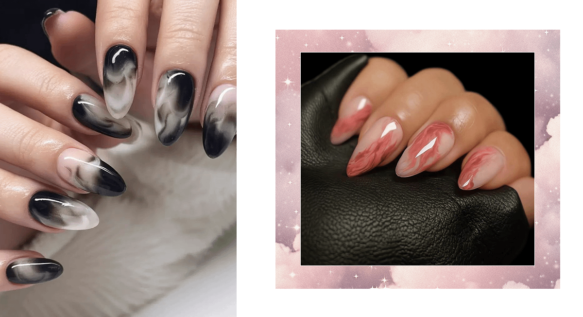 Комбинация светлых и темных оттенков дымки помогает подчеркнуть детали рисунка и создать эффект глубины, будто узоры парят над ногтевой пластиной.