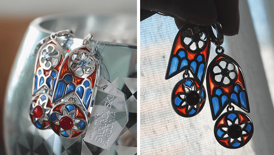 Витражная эмаль — техника получила название из-за сходства с витражными стеклами. Просвечивающая цветная эмаль находится в обрамлении золотых или серебряных перегородок и напоминает цветное витражное стекло.