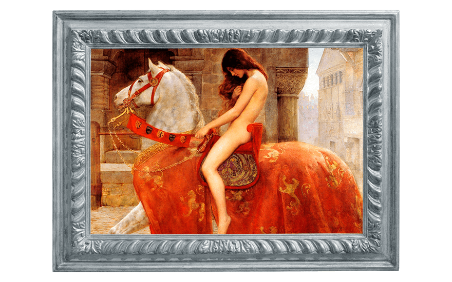 В основе полотна лежит средневековая легенда о супруге графа Леофрика: женщина переживала о судьбе подданных и хотела, чтобы муж снизил непомерно высокие налоги. Опьяневший к тому времени мужчина ответил, что согласится на это лишь в том случае, если красавица Годива проедет через город нагишом. Так и вышло: 10 июля 1040 года графиня позабыла о своей гордыне ради благополучия крестьян, обнажилась и пересекла на лошади улицы Ковентри. В знак уважения и признательности горожане остались дома и закрыли ставни, чтобы не увидеть всадницу. Хотя миф имеет мало общего с действительностью, история вышла по-своему прекрасной — как и картина прерафаэлита Кольера.