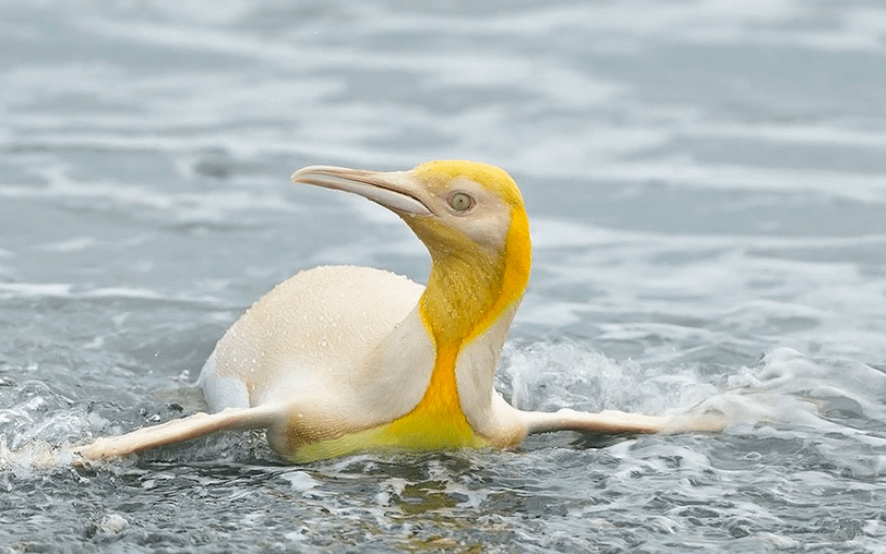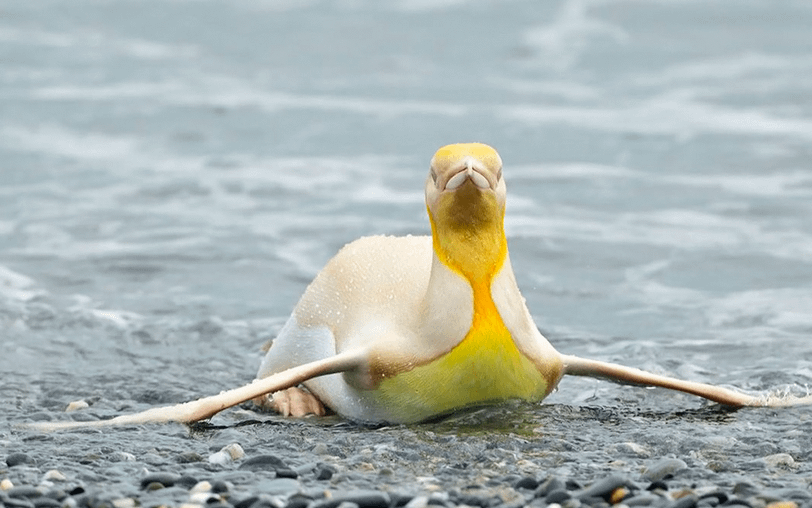 Ив Адамс, фотографирующий дикую природу, впервые поделился снимками невиданного прежде желтого пингвина. Необычное животное он встретил на острове Южная Георгия, Великобритания.