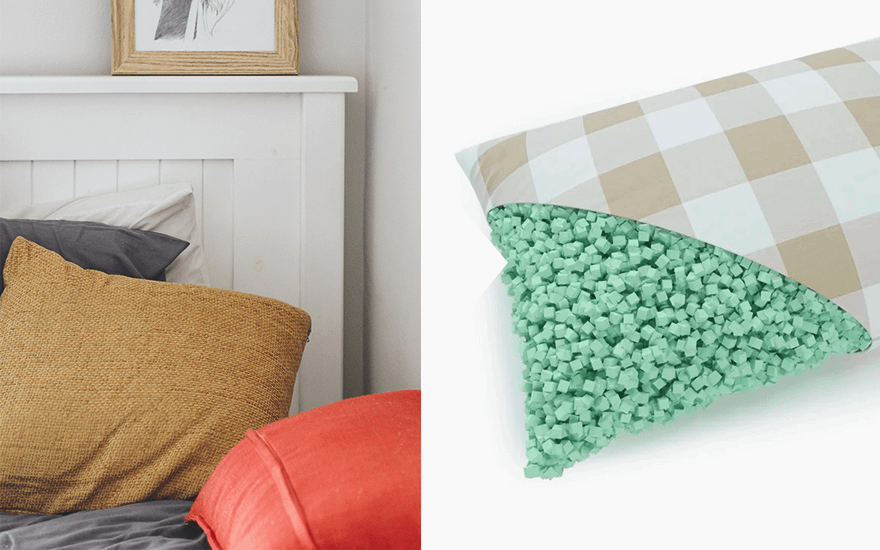 Это мельчайшие шарики, похожие на пенополистирол. Подушки, набитые ими, повторяют форму головы, благодаря чему пользуются спросом у заядлых путешественников. Продукты из микрогеля редко встретишь в спальне — большие подушки, набитые таким материалом, не так хорошо удерживают форму, как синтепуховые образцы, а стоить при этом они могут дороже.