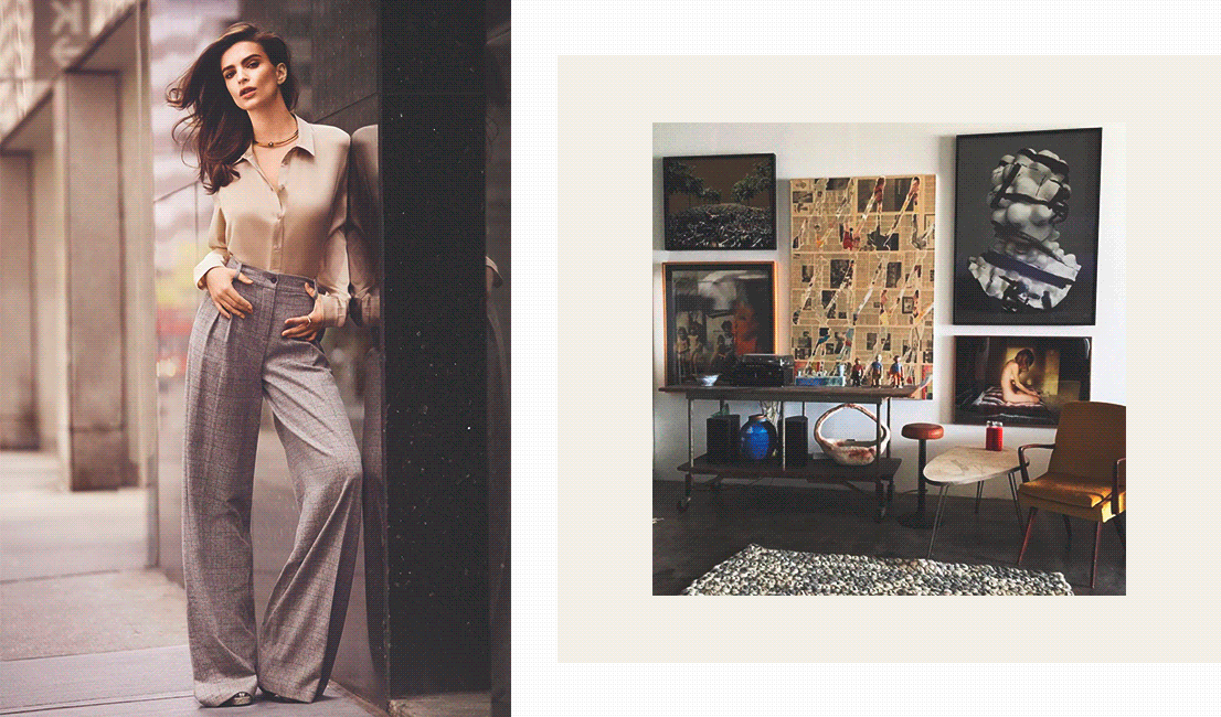 В интерьере преобладает натуральное дерево и естественные цвета, что добавляет ему еще больше уюта. Эмили любит делиться фотографиями своего эклектичного дома в Instagram, и особое внимание всегда привлекают нефритово-зеленый диван, красочные ковры, в частности из коровьей шкуры, мраморный журнальный столик и золотая лампа.