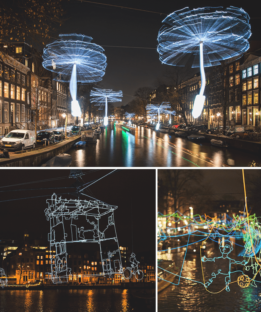 На время амстердамского фестиваля света в город приезжают художники по свету со всего мира. Сотни дизайнеров и архитекторов представляют свои работы в центре города. Увидеть их может каждый, а оценивает специально отобранная комиссия.