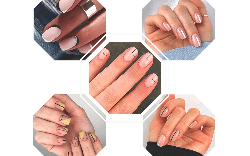 В то же время даже классический нюдовый маникюр можно украсить. Например сделать цветные вставки, провести невесомые геометрические линии, выбрать в качестве дополнительного украшения мелкий глиттер или фольгу.