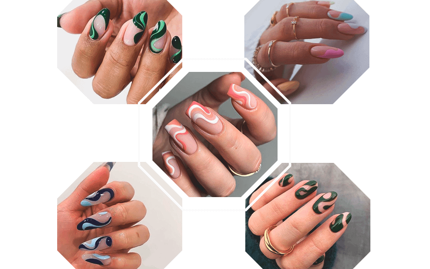В качестве дизайна для ногтей ты можешь выбрать хаотичные линии, цветные волны или миниатюрные цветочки.