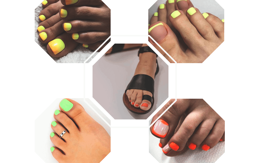 Уже несколько сезонов неоновые оттенки не выходят из летних трендов дизайна педикюра. Не удивительно: такие цвета особенно хорошо смотрятся на загорелой коже. И если в городской суете они могут выглядеть не совсем уместно — для летнего отпуска яркий педикюр подходит как нельзя кстати.