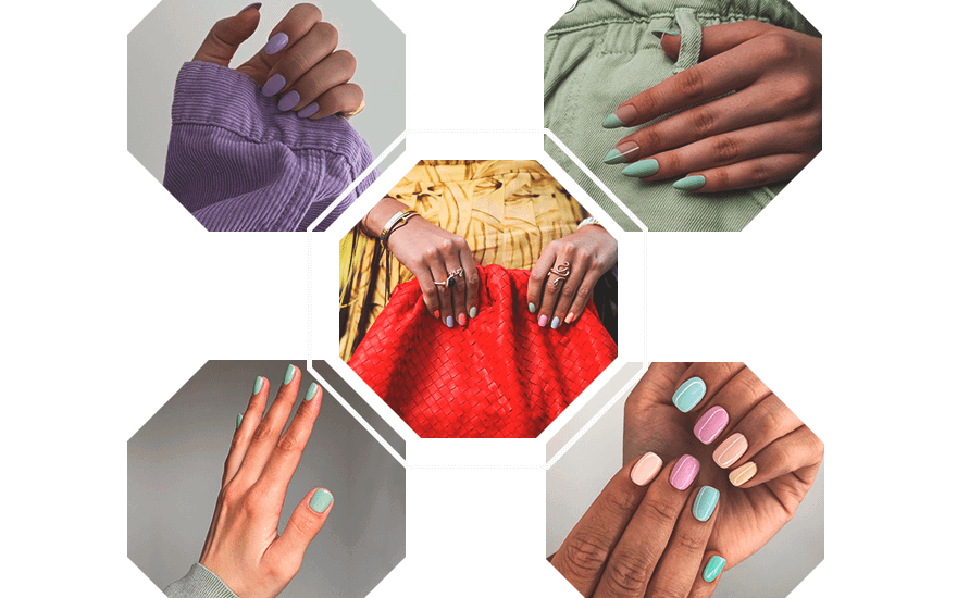 Палитра трендовых цветов в 2021 году может похвастаться своим разнообразием: сейчас актуальны и цвет года — желтый, — и пастельные тона, и мятный с лавандовым. При выборе маникюра ты можешь без колебаний опираться на ту цветовую гамму, которая сейчас популярна в одежде и аксессуарах. Если у тебя есть аксессуар, например сумка трендового цвета, — ты можешь подобрать цвет ногтей ей в тон.