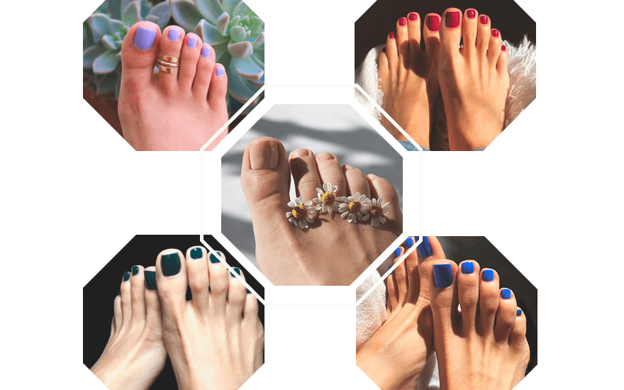 Лето — время, когда природа уже проснулась и вовсю радуется солнцу. Поэтому один из интересных вариантов педикюра — узоры с цветами, растениями и лепестками. Выбирать рисунок нужно исходя из размера и формы твоей ногтевой пластины на пальцах ног. В некоторых случаях можно создать полноценный дизайн на каждом ногте, в других придётся обойтись большим пальцем.