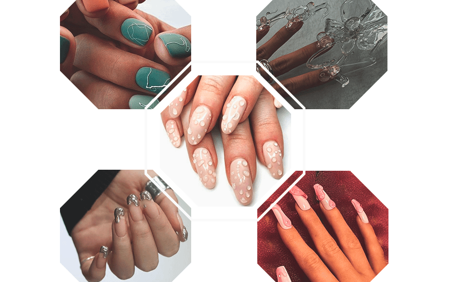 После того как в начале года вышел совместный трек Росалии и Билли Айлиш на песню Lo Vas a Olvidar, объемный маникюр мгновенно появился в числе главных трендов 2021. Конечно, в повседневной жизни огромные, словно хрустальные цветы, ногти — как у Билли — будут непрактичными. Поэтому, если тебе захочется попробовать 3D-дизайн, присмотрись к вариантам с подтеками и каплями из прозрачного лака. 3D-фигуры можно заменить на паутинки светлого оттенка, складывающиеся в абстракцию.