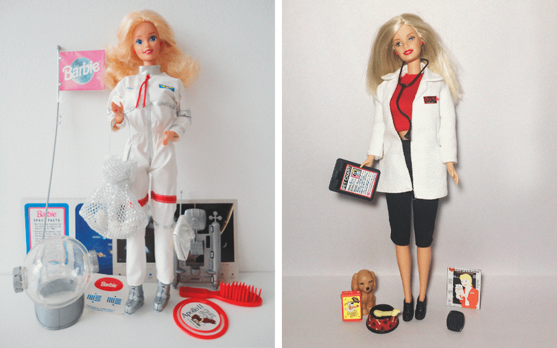 Так, Барби вслед за Джеки Кеннеди носила пышные прически и классические костюмы. На фоне борьбы за гражданские права она обзавелась темнокожей подругой – Кристи. По мере того, как обретали голос феминистки, Барби получала возможность стать космонавткой, врачом, ветеринаром.