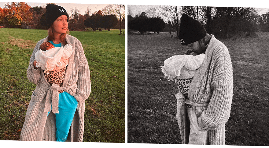 Сама Джиджи редко публикует фото с Хай. Даже если и делает это, то выбирает размытые снимки, на которых не заметны черты лица дочери. К слову, ожидая ребенка, Хадид не рассказывала о беременности.