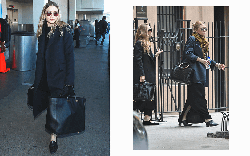 Мэри-Кейт и Эшли давно и беззаветно преданы черному цвету и регулярно создают тотал-луки с ним для торжественных или повседневных выходов. Часто кажется, что они специально усложняют себе задачу и стараются создать оригинальный образ, используя минимум инструментов. Когда цветовое разнообразие полностью отсутствует, остается играть с силуэтами, и это порой рождает удивительные луки.
