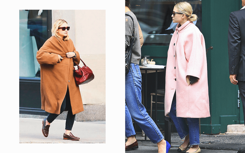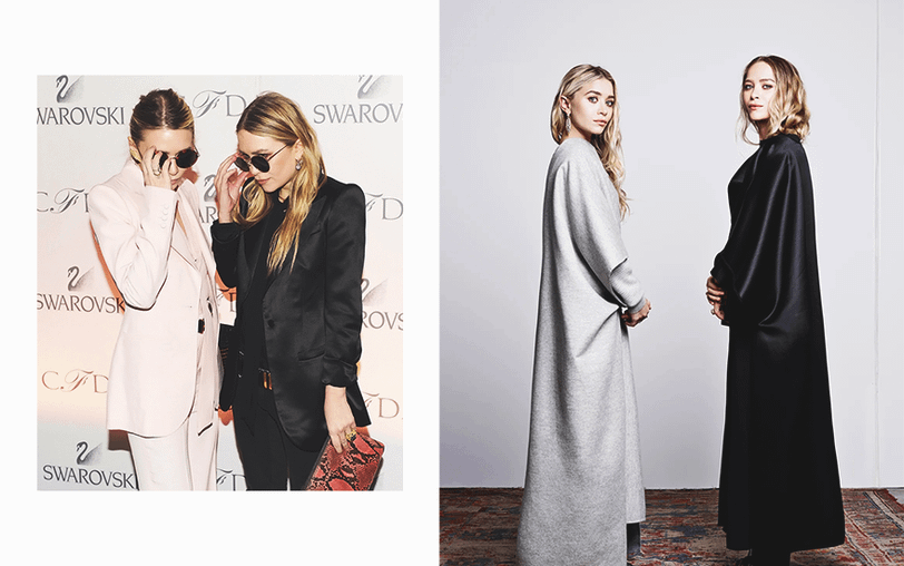 Несмотря на любовь к броскому богемному шику, главной чертой стиля Мэри-Кейт и Эшли был и остается минимализм. Они используют классические цвета, монохромность, избегают декоративных деталей, но уделяют большое внимание силуэту, экспериментируют с многослойностью и заигрывают с пропорциями: узкие джинсы сочетаются со свитером оверсайз, а широкие брюки, напротив, с приталенным джемпером.