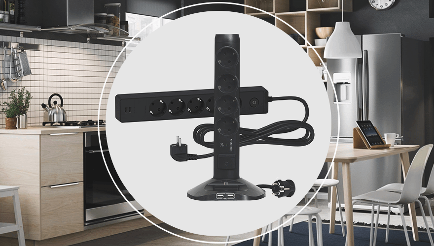 Обычные удлинители используют в двух случаях: когда нужно сразу несколько электроприборов или если длина кабеля одного из них не дотягивает до ближайшей розетки. Чтобы выбрать нужную модель, стоит обращать внимание не только на дизайн и количество розеток, но и на мощность прибора. К слову, удлинители на 1300 и 2200 Вт подходят для светотехники, на 2200 Вт — для электроники, а на 3500 Вт — для бытовой техники.