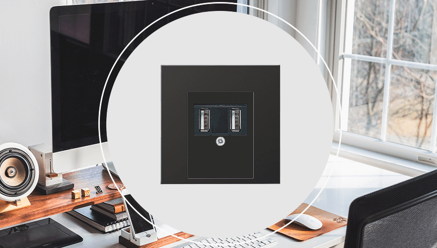USB-розетки Jung можно одновременно использовать для зарядки двух приборов. При этом заряжаться они будут быстрее и эффективнее, нежели от USB-порта на компьютере или ноутбуке. Опять же, розетку можно подобрать под любой интерьер по цвету — белый, черный, алюминий, латунь классическая и античная. Можно разместить такую розетку рядом с туалетным столиком, чтобы можно было легко делать несколько дел сразу: собираться на работу или свидание, заряжать смартфон и при этом отвечать на сообщения.