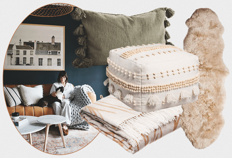 Привнести атмосферу хюгге невозможно без разнопланового текстиля, которым скандинавы наполняют дома вне зависимости от времени года. Шерстяные пледы крупной вязки, покрывала из флиса, декоративные подушки и пуфики с бахромой, мини-лежаки и овечьи шкуры на полу — все это добавляет ощущения теплоты, уюта и настраивает на тотальный релакс.