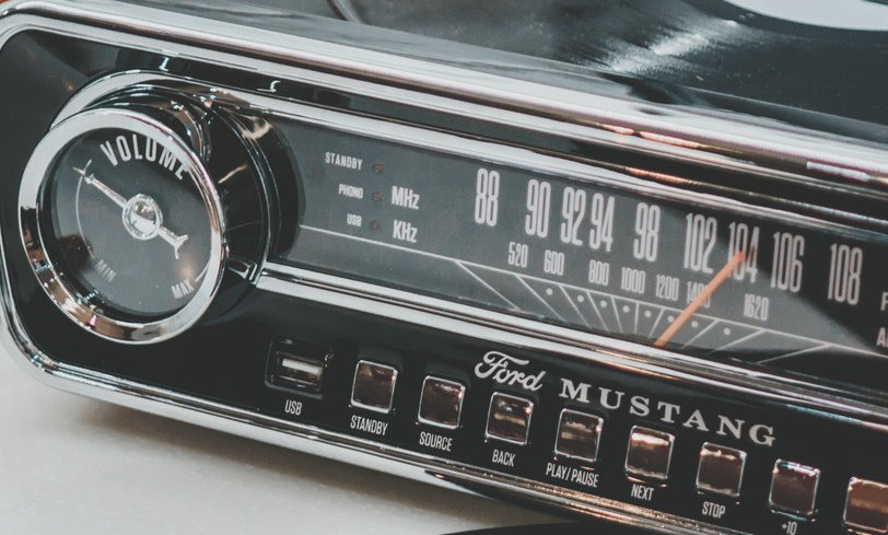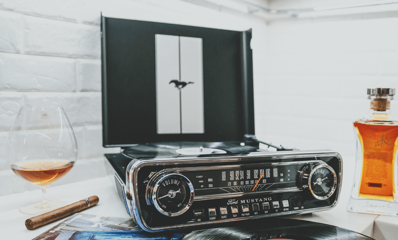 Внутрь ты захочешь заглянуть не сразу, в первую очередь внимание привлекает передняя панель проигрывателя, имитирующая приборную панель Ford Mustang. Пластиковые кнопки будто покрыты хромом. FM-тюнер очень похож на спидометр Mustang 1965 года: даже есть такие же круглые диски по сторонам, правда по одному, а не по два. По бокам проигрывателя два встроенных динамика с той же отсылкой к классике.