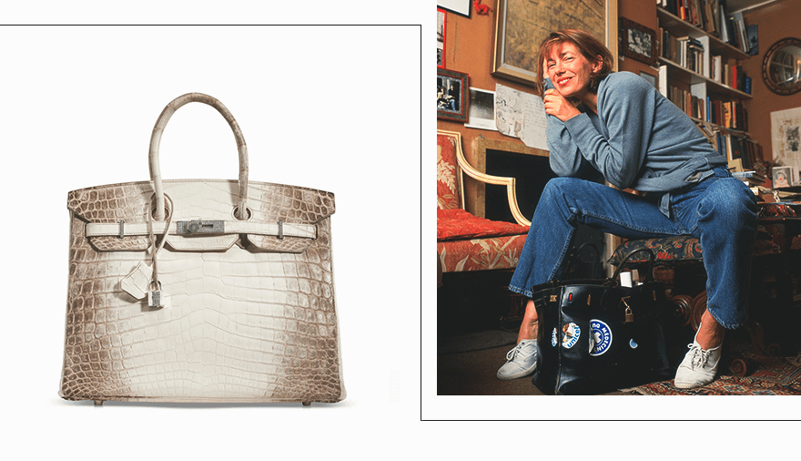 История создания сумки началась в 1983 году со случайной встречи сына Роберта Дюма Жан-Луи и популярной французской актрисы Джейн Биркин в самолете, направлявшемся из Парижа в Лондон. После того, как соломенная сумка актрисы упала на пол и содержимое рассыпалось, она пожаловалась на то, что ей тяжело найти подходящую кожаную сумку.