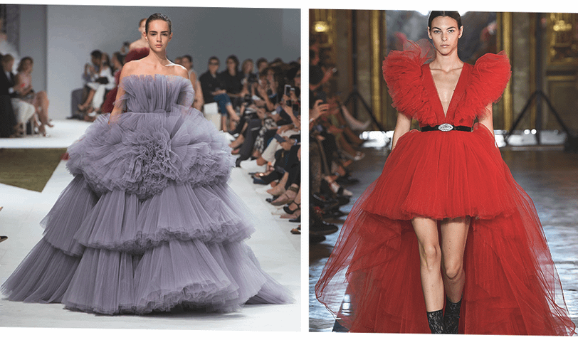 В это же время подиумы захватил тюль – пышные многослойные свободные платья и юбки из него создавали Мария Грация Кьюри в своем дебюте в качестве креативного директора дома Christian Dior, Джамбаттиста Валли, Симон Роша и другие модельеры.