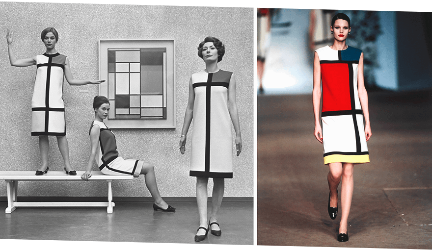 Это случилось благодаря платью Mondrian от Ива Сен-Лорана. В 1965-м дизайнер представил одежду, сшитую из разноцветных кусков трикотажной ткани. Успех был настолько ошеломительным, что до сих пор на рынке появляются подделки этого наряда.