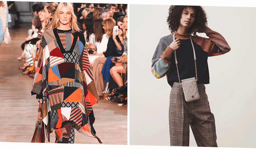 Некоторые дизайнеры внедряли в свои коллекции классический пэчворк. Vetements показали в осенней коллекции 2020 года платье из шарфов, Marni продемонстрировали наряды, где различные ткани соседствовали с металлическими вставками.