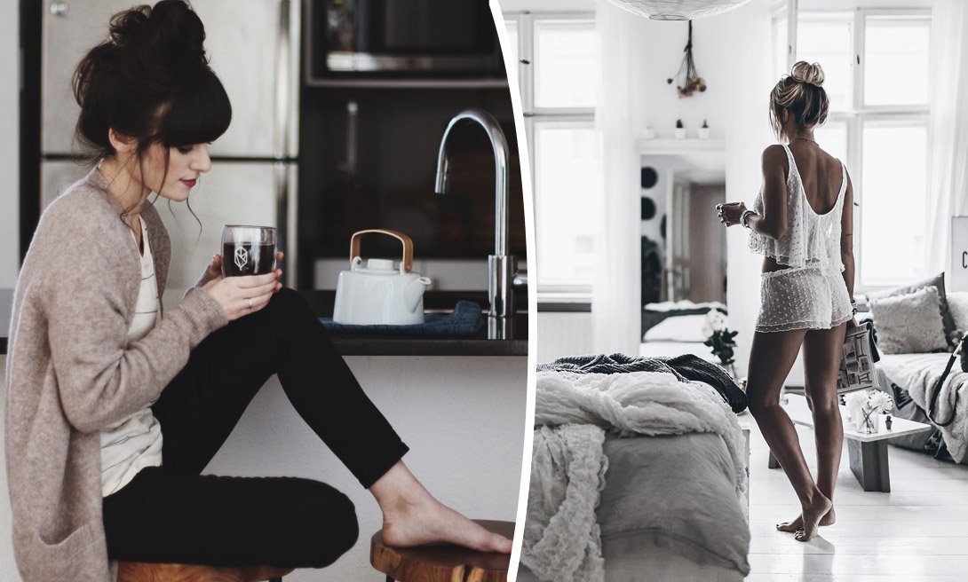 Я против полноценного вечернего лука, который испортит весь уют, но обозначить исключительность момента стоит. Найди баланс между выходным нарядом и тем, в чем ты обычно ходишь по квартире. Проще говоря, добавь к потертой майке и пижамным шортам пару украшений и небрежный пучок на голове.