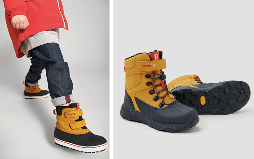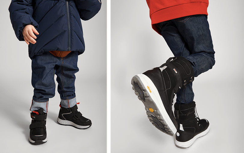 Обеспечивать тепло помогает водонепроницаемая обувь. В ней ребенок может исследовать мир в любую погоду, а взрослому не придется переживать за то, что ноги промокнут. За обувью Reima очень легко ухаживать: специальная пропитка без фторуглеродов отталкивает грязь и любую жидкость. Многие модели можно стирать в машинке при 30° С. Ботинки с подошвой Vibram EcoStep (например, модель Ehtii) выполнены из переработанной резины, благодаря чему имеют прекрасное сцепление с поверхностью в мороз и слякоть, защищая малышей от падений.
