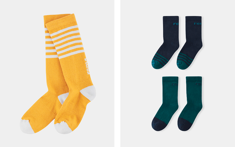 Как бы тепло ни был одет и обут ребенок, родители могут заметить, что у него бывают холодными руки или ноги. Reima знает, как оставить пяточки малышей сухими даже при большой физической активности. Детские носки и колготки не дают влаге проникнуть внутрь, оставляя ноги в тепле и сухости. Все благодаря эластичному влагоотводящему материалу и смеси из шерсти, которая поддерживает комфортную температуру и не дает замерзнуть.