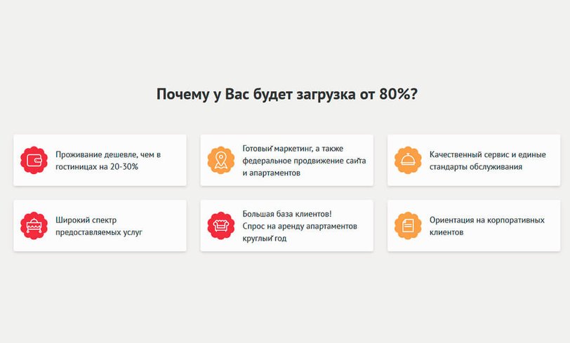 Как и предполагает любая франшиза, алгоритм нашей работы прост. Но при этом очень выгоден. Франчайзи берут в управление 1-2-комнатные апартаменты с качественным ремонтом, обставленные мебелью и техникой. Им остается только укомплектовать квартиру в соответствии с нашими чек-листами, разместить брендовую продукцию и провести фотосессию. После этого апартаменты сдаются в краткосрочную аренду. Как правило, уже на второй месяц работы франчайзи выходят на загрузку площади от 70 до 80%, что позволяет им работать в плюс.