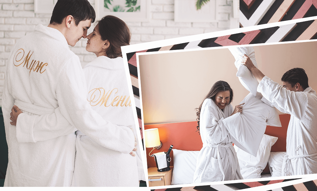 Футболки с надписью «Он мой», «Она моя» не всем кажутся уместными, но домашняя вещь для вас двоих может быть сколько угодно милой и трогательной. Приобретите именные халаты, пусть самая уютная одежда в гардеробе напоминает вам о друг друге.