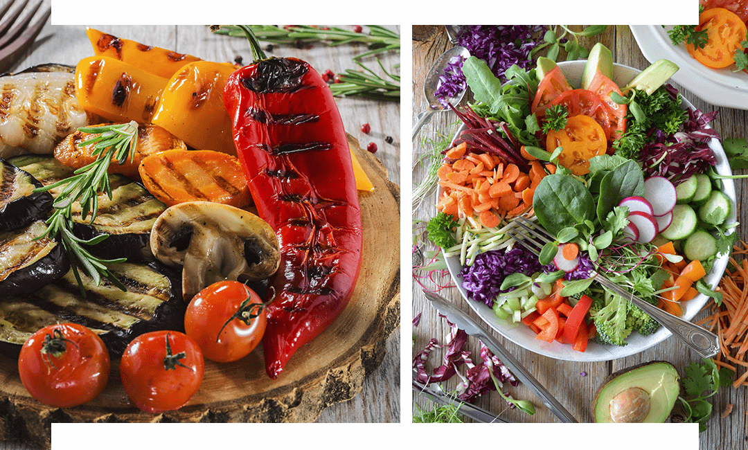 Ты можешь готовить овощи на пару, тушить или обжаривать на гриле с приправами. Кстати, запекание помидоров и болгарского перца выявляет их естественную сладость, а поджаренные баклажаны и кабачки хрустят не хуже чипсов.