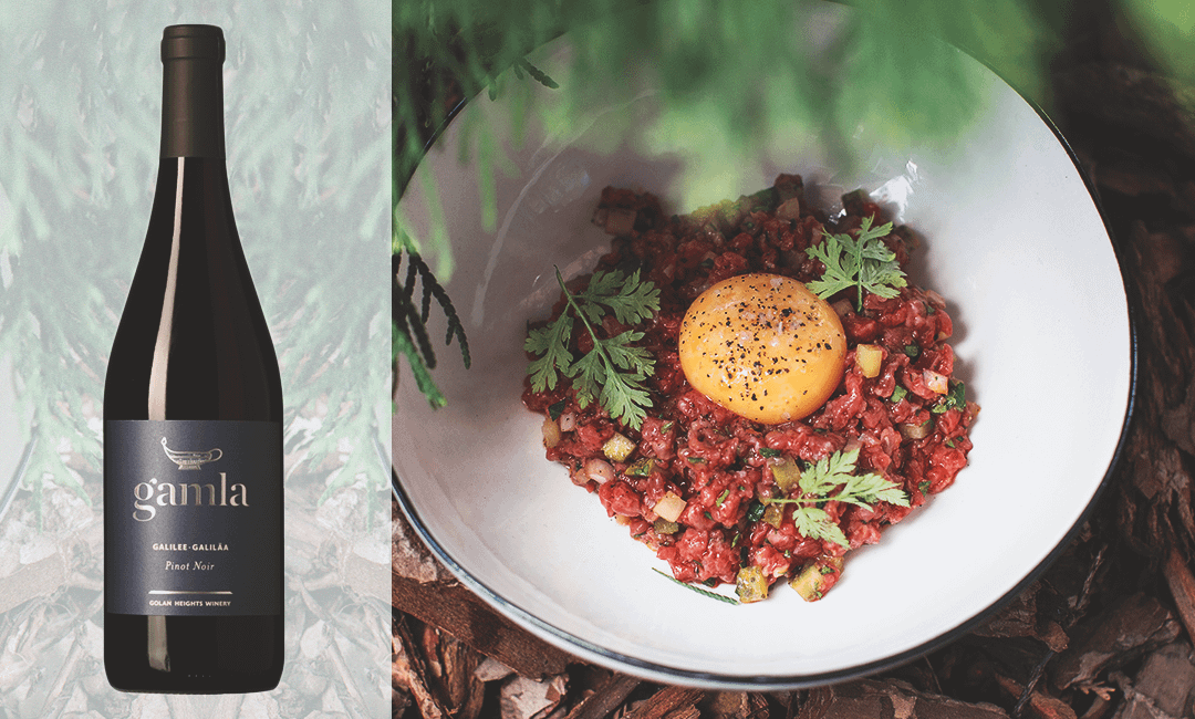 Какое вино подойдет: Pinot Noir «Gamla», Golan Heights Winery – красное, сухое вино из Израиля, изготовленное из винограда сорта Пино Нуар. Оно идеально сочетается как с холодными, так и с горячими закусками, подходит к рыбе, мясу и сырам. Обладает красно-рубиновым цветом, тонким ароматом, наполненным нотами вишни, сливы и сухоцвета, а также легким фруктовым вкусом с пикантными джемовыми нотками. Этого вина можно выпить много и остаться со светлой головой.