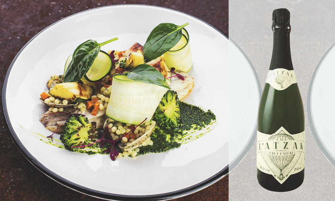 Какое вино подойдет: Cava «L’Atzar» Brut Natur – игристое белое вино светло-золотистого цвета и легкими зеленоватыми отблесками. Оно имеет приятный, освежающий вкус и потрясающий аромат с преобладающими оттенками грейпфрута, булочки бриошь и персиков. Огромное его преимущество – при изготовлении не используют дозажный ликер, а значит, содержание сахара в нем минимальное.